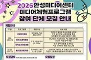 뉴스온경기 | 안성미디어센터는 지역 어린이와 청소년이 미디어를 쉽고 재미있게 접할 수 있도록 ‘2026년 미디어체험프로그램’에 참여할 관내 어린이집, 유치원, 학교 등 단체를 모집한다고 밝혔다. 이번 프로그램은 아이들이 영상과 소리를 직접 다뤄보며 미디어의 원리를 이해하고 창의력과 표현력을 키울 수 있도록 기획된 체험형 교육이다. 영상·라디오 스튜디오를 활용해 진행되며, 공간·대상별 직업체험과 미디어 놀이 중심의 구성으로 어린이와 청소년이 즐겁게 참여할 수 있는 것이 특징이다. 2026년에는 ▲크로마키 체험(우주·세계여행 영상 촬영) ▲TV 뉴스 제작 체험 ▲뮤직 차트 방송 제작 ▲폴리(효과음) 체험 등 다양한 프로그램이 마련된다. 각 프로그램은 연령대에 맞춰 구성되며, 방송 직업 탐색과 실습 중심 활동을 통해 참여자의 흥미와 몰입도를 높인다. 모집 대상은 안성시 관내 6세 이상 어린이부터 초·중·고등학생이 포함된 어린이집, 유치원, 학교, 기관 등 단체로, 최소 10명에서 최대 30명 내외의 15개 팀을 선착순 모집한다. 체험비는 전액 무료이며, 프로그램은 오는 2월부터 5월까지 매주 수요일 오전에 운영된다.