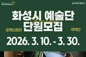 뉴스온경기 | 화성시문화관광재단은 2026년 ‘화성시 예술단’을 이끌어갈 오케스트라 및 국악단 단원을 모집한다. 화성시 예술단은 화성시문화관광재단이 운영하는 공공 예술단체로, 2020년 창단 이래 국악단과 오케스트라를 중심으로 기획공연과 화성시 주요 행사에 참여하며 지역 문화예술 활성화에 기여하고 있다. 화성시를 대표하는 전문 예술단체로서 고전부터 현대 음악에 이르는 폭넓은 레퍼토리를 선보이며 시민들에게 수준 높은 공연을 제공하고 있는 화성시 예술단은 연간 30여 회의 공연을 진행하며 ‘정기연주회’, 다양한 테마의 ‘기획공연’, 클래식을 친근하게 풀어내는 ‘마티네 콘서트’, 시민들의 일상 가까이에서 음악을 만날 수 있는 ‘공연투어’ 등 다양한 시리즈를 통해 시민들의 문화 향유 기회를 확대하고 있다. 이번 2차 단원 모집에서는 ▲오케스트라 단원 41명 ▲국악단 단원 14명을 선발할 계획이다. 선발된 단원은 임용일부터 약 6개월간 화성시 예술단의 예술 활동 및 공연 전반에 참여하게 된다. 채용 절차는 서류 심사, 오디션, 면접 전형으로 진행되며, 지원서 접수는 3월 10일부터 3월 30일 오후 6시까지