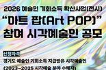 뉴스온경기 | 경기도와 경기문화재단이 “2026 예술인 기회소득 확산사업(전시)“의 일환으로 진행하는 “아트 팝(Art POP)” 참여 시각예술인을 공개 모집한다. ‘2026 예술인 기회소득 확산사업(전시)’은 2023년부터 2025년까지 '경기도 예술인 기회소득'을 지원받은 시각예술인에게 지속적인 예술 창작 발표의 기회를 제공하고, 도민에게는 문화예술 향유 기회를 확대하기 위해 마련된 행사다. “아트 팝”의 신청 대상은 2023년부터 2025년까지 '경기도 예술인 기회소득'을 지원받은 시각예술 분야의 경기도 거주 예술인이다. 3년 동안 1회라도 지원을 받았다면 신청할 수 있고, 기존 “예술인 기회소득 페스티벌(전시)”에 참여한 이력이 있어도 신청 가능하다. 신청을 원하는 예술인은 국가문화예술지원시스템(NCAS)을 통해 지원신청서, 예술인 기회소득 지급 사실 증빙 자료 등을 제출하면 된다. 특히 이번 “아트 팝”에는 회화, 조각, 공예, 설치, 미디어, 일러스트, 웹툰, 그래피티 아트, 디지털 페인팅 등 모집 분야를 확대해 보다 다양한 시각예술 분야의 예술인들이 참여할 수 있도록 했다.