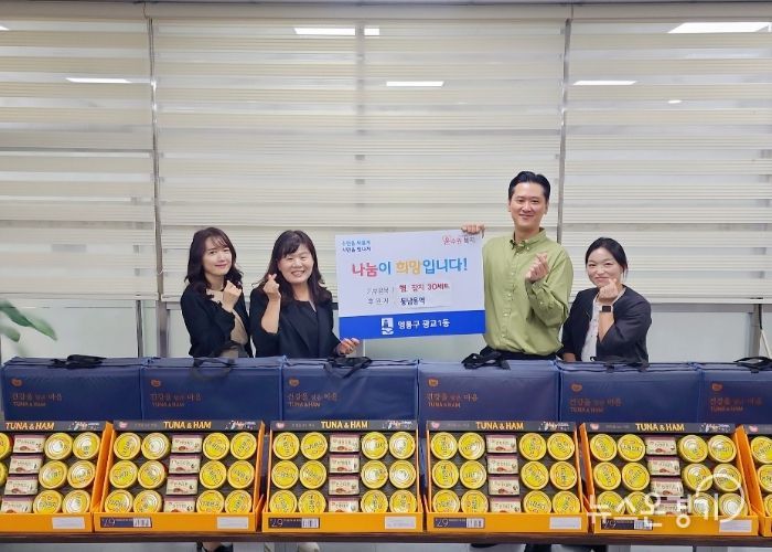 뉴스온경기 | 수원시 영통구 광교1동은 24일, 동남용역(대표 이경수)으로부터 추석을 맞아 참치·스팸 세트 30박스를 후원받았다고 밝혔다.