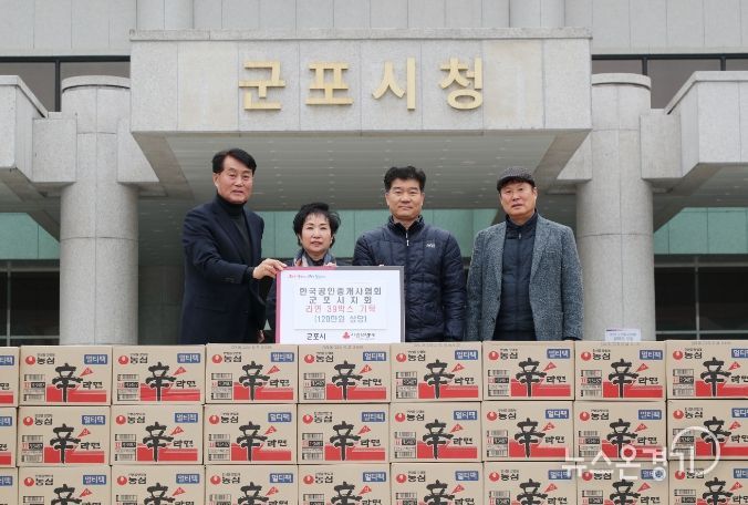 뉴스온경기 한민규 기자 | 한국공인중개사협회 군포시지회는 지난 6일 군포시청을 방문해 취약계층 가정에 전해달라며 120만원 상당의 라면을 기탁했다.