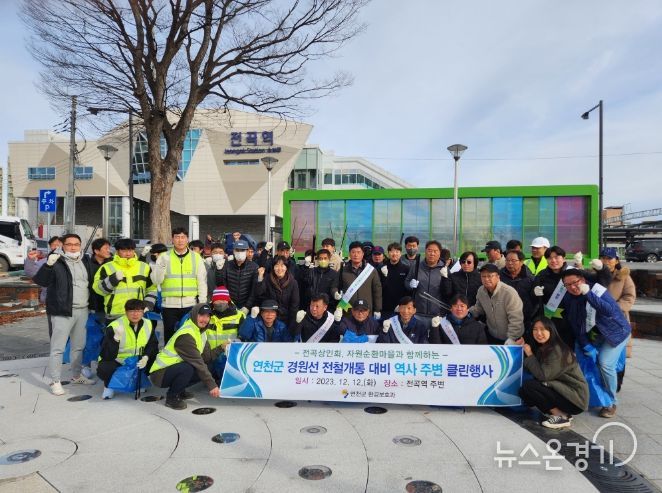 뉴스온경기 한민규 기자 | 연천군은 12일 1호선 전곡역 앞에서 전철 개통 대비 역사 주변 클린 행사를 개최했다.