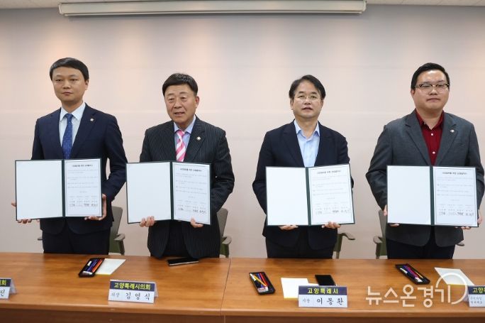 이날 협약식에는 이동환 고양특례시장, 김영식 고양특례시의회 의장을 비롯해 여·야 양당 대표의원(국민의힘 박현우 의원, 민주당 최규진 의원)이 참석했다.