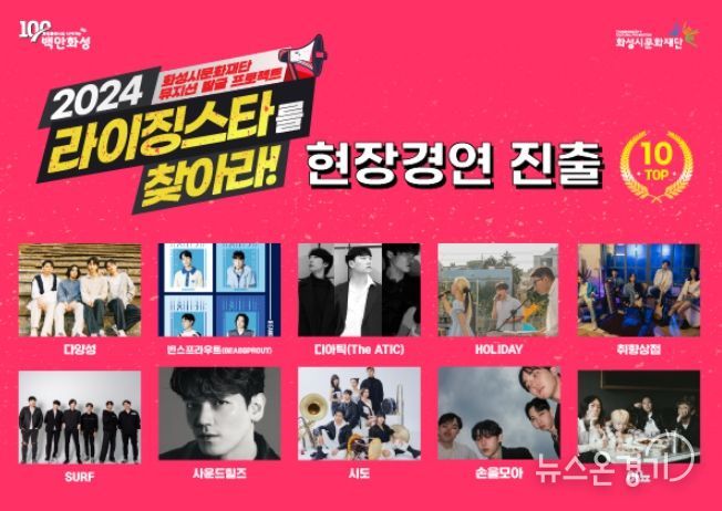 뉴스온경기 | 화성시가 주최하고 (재)화성시문화재단이 주관하는 뮤지션 발굴 프로젝트 2024 라이징스타를 찾아라 현장경연 진출 10팀이 선정됐다.