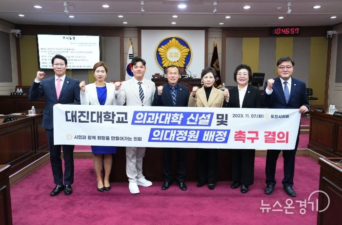 또한, 포천시의회는 ▲포천~세종 고속도로(포천~구리 민자 구간) 통행료 인하 촉구 건의안(임종훈의원 대표발의) ▲경기북부특별자치도 설치를 위한 촉구 결의안(조진숙 의원 대표발의) ▲대진대학교 의과대학 신설 및 의대정원 배정 촉구 결의안(서과석 의원 대표발의) 등 3건의 결의(건의)안을 채택하여 지역 주민의 숙원 사업을 해결하기 위해 많은노력을 기울였다.