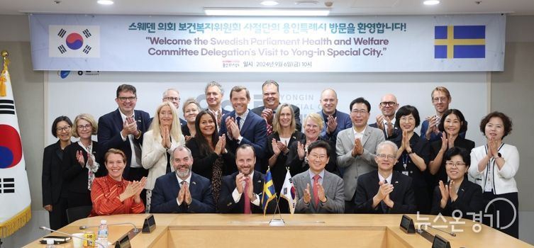 뉴스온경기 | 용인특례시는 6일 스웨덴 의회 보건복지위원회 대표단과 주한 스웨덴 대사관 관계자들이 시청을 방문해 용인시의 사회복지정책과 인공지능(AI)을 활용한 복지서비스에 대한 설명을 듣고 상호 협력 방안을 논의했다고 밝혔다.