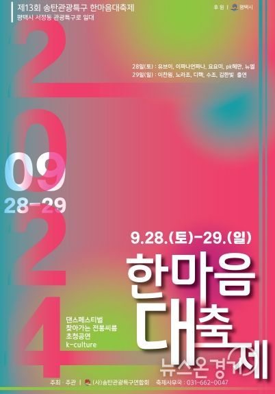뉴스온경기 | 사단법인 송탄관광특구연합회가 주최하고 주관한 ‘제13회 송탄관광특구 한마음대축제’가 오는 28일과 29일 양일간 송탄출장소 앞 관광특구로 일대에서 열린다.