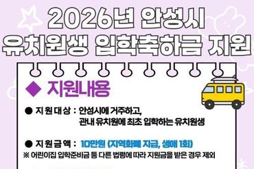 안성시, 유치원생 입학 축하금 10만원 지원