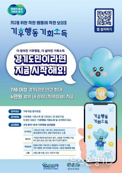 ‘기후행동 기회소득’은 민선 8기 경기도 대표 정책 중 하나로, 일상생활 속 온실가스 감축 활동에 대해 평가와 보상을 제공하는 사업이다. 경기도는 지난해부터 전용 앱(App)을 통해 도민들의 탄소 감축 활동 실적을 기록하고 이에 따른 보상을 지역화폐로 지급하고 있다. 현재까지 누적 가입 회원은 152만 명이다.