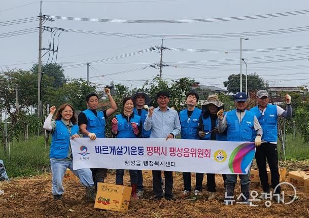 뉴스온경기 | 평택시 바르게살기운동 팽성읍 위원회는 지난달 30일 팽성읍 남산리 77-14 텃밭에서 ‘이웃사랑 고구마 수확 행사’를 진행했다.