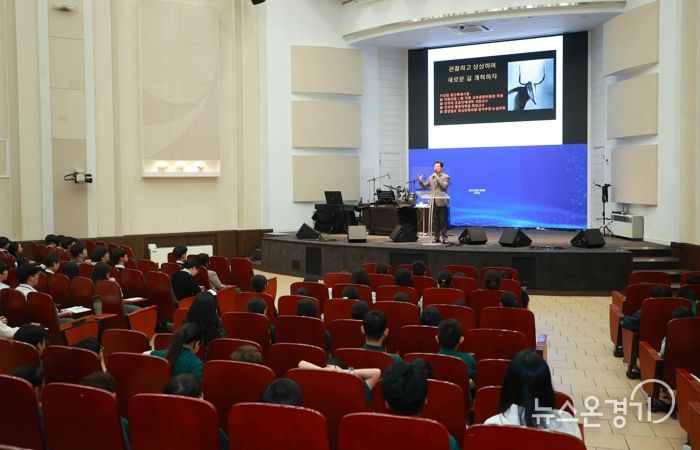 뉴스온경기 | 이상일 용인특례시장이 17일 오후 기흥구 신갈동에 있는 새물결기독학교에서 학생들을 대상으로 ‘관찰하고 상상하며 새로운 길을 개척하라’는 주제로 약 한 시간에 걸쳐 특강을 했다.