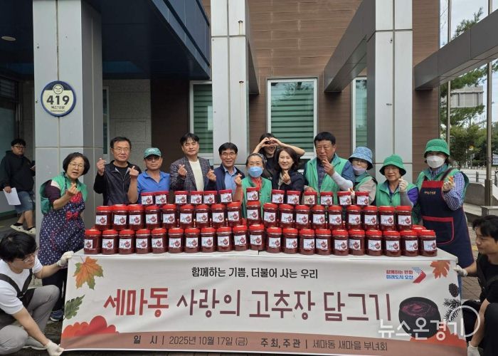 뉴스온경기 | 오산시 세마동 새마을부녀회는 지난 17일 독거노인, 저소득 가정, 차상위 계층 등 관내 취약계층을 위한 ‘사랑의 고추장 담그기’ 행사를 개최했다고 밝혔다.