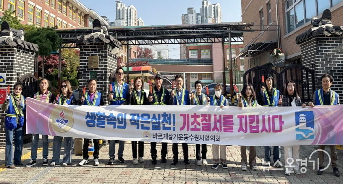 뉴스온경기 | 수원시 영통구 바르게살기운동협의회는 지난 11월 7일, 매탄동 산남초등학교 앞에서 ‘기초질서 확립 캠페인’을 실시했다. 이는 일상 속에서 질서와 배려를 실천하는 시민 문화를 조성하고, 더불어 깨끗하고 안전한 생활환경을 만들어가기 위한 취지다.