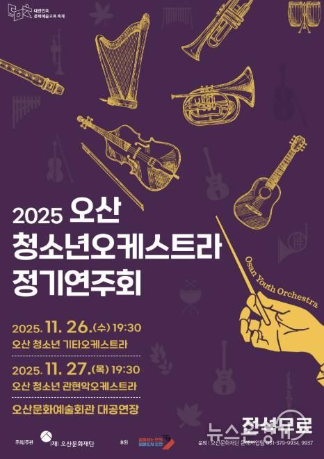 뉴스온경기 | 오산문화재단이 주최하고 오산시가 후원하는 ‘2025 오산 청소년 오케스트라 정기연주회’가 오는 11월 26일부터 27일까지 오산문화예술회관 대공연장에서 이틀간 개최된다. 공연은 전석 무료로 시민 누구나 관람할 수 있다.