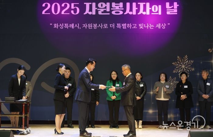 뉴스온경기 | 화성시자원봉사센터 주관 ‘2025년 자원봉사자의 날 기념식’가 지난 29일 시청 대강당에서 성황리에 개최됐다.