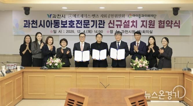 뉴스온경기 | 과천시는 지난 4일 시청 회의실에서 메르세데스-벤츠 사회공헌위원회 및 사회복지법인 아이들과미래재단과 ‘과천시아동보호전문기관 신규 설치’를 위한 협약식을 개최했다고 밝혔다.