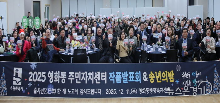 뉴스온경기 | 수원시 장안구 영화동은 지난 11일, 동 행정복지센터 3층 대강당에서 한 해 동안 갈고닦은 실력을 뽐내고 올 한 해를 돌아보는 ‘2025 영화동 주민자치센터 작품발표회 & 송년의 밤’을 개최했다.