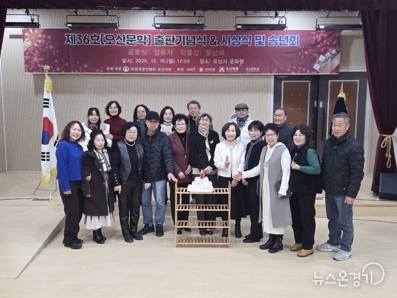 오산문인협회(회장 박효찬)는 지난 15일(월) 오후 5시, 오산시 은계동 오산문화원 독산홀에서 제36호 『오산문학』 출판기념식을 가졌다. 『오산문학』 출판기념식에는 김선옥 오산시청 문화예술과장과 장복실 오산문화원 사무국장이 참석했으며 연말 바쁜 일정을 고려해 외부 손님은 초청하지 않고 문인협회 자체 행사로 간소하게 자축하는 자리를 가졌다.