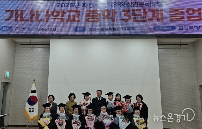 뉴스온경기 | 화성특례시는 17일 화성시평생학습관에서 ‘2025년 학력인정 성인문해교실 가나다학교 졸업식’을 개최했다.