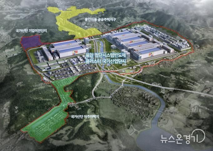 ‘용인 첨단시스템반도체 국가산업단지’는 이동읍·남사읍 일원 777만 3656㎡(약 235만 평) 부지에 삼성전자가 시스템반도체 생산설비(Fab) 6기를 건설하는 초대형 프로젝트다. 삼성전자는 이곳에 360조원을 투자할 계획이라고 밝혔지만 향후 생산설비 건설이 진행되면서 투자규모는 한층 더 커질 것이라는 전망이 나오고 있다. 이곳에는 80여 개 반도체 소재·부품·장비·설계 기업, 연구기관도 입주하게 된다.