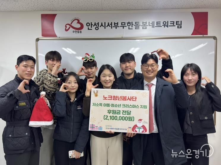 뉴스온경기 | 안성시 노크청년봉사단은 지난 22일 사회복지법인 한길복지재단에서 수탁 운영하는 안성시서부무한돌봄네트워크팀에 저소득 아동·청소년 크리스마스 지원을 위한 후원금 2,100,000원을 전달했다고 밝혔다.