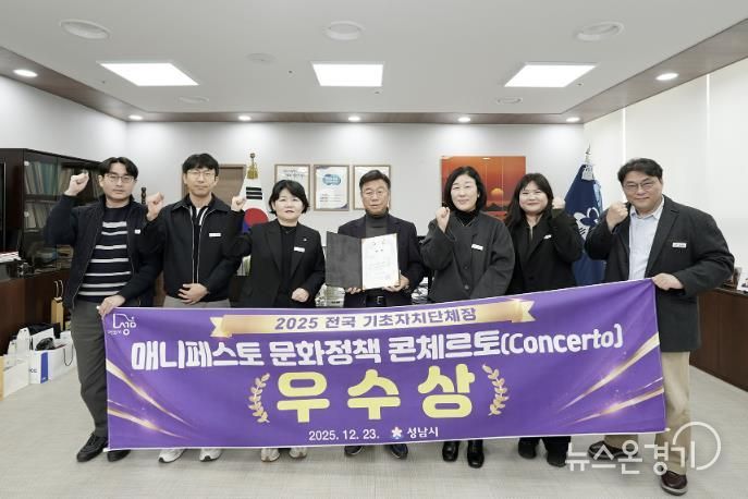 뉴스온경기 | 성남시는 ‘2025 전국 기초자치단체장 매니페스토 문화정책 콘체르토(Concerto)’ 대회에서 신인 예술인 등용문인 ‘성남(SN) 탤런트’ 사업 성과를 인정받아 문화 활동 활성화 분야 우수상을 받았다고 26일 밝혔다.