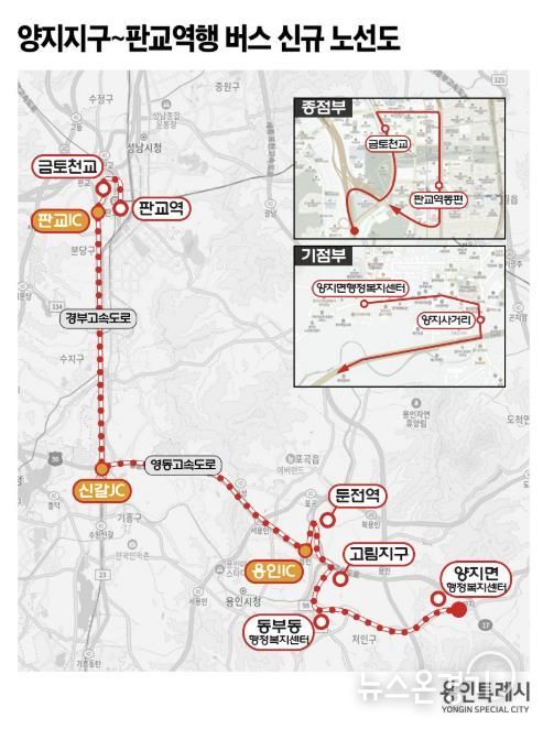 뉴스온경기 | 용인 양지지구를 출발해 고림동과 둔전역을 거쳐 성남 판교역까지 운행하는 버스 노선이 확정됐다.