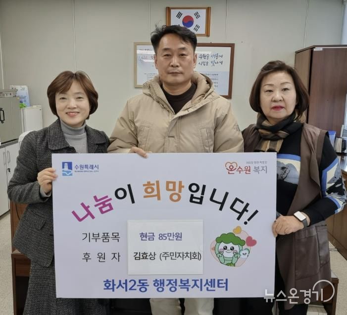 김효상 대표는 화서2동 주민자치회 문화복지분과장으로 활동하며, 평소 지역 주민의 복지 증진과 공동체 활성화를 위한 다양한 사업과 활동에 적극 참여해 왔다. 연말을 맞아 이웃을 위한 나눔을 직접 실천하고자 이번 성금 기부를 결정했으며, 특히 주민자치회 구성원으로서 지역사회에 대한 책임과 연대의 가치를 몸소 실천했다는 점에서 의미가 크다.