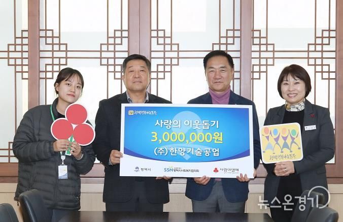뉴스온경기 | 평택시 서탄면에 있는 ㈜한양기술공업은 관내 취약계층 지원을 위한 성금 300만 원을 평택시청 대외협력실에서 평택행복나눔본부에 전달했다.
