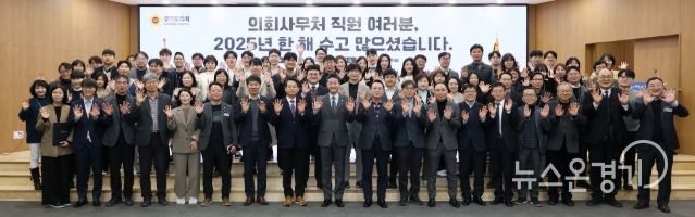 뉴스온경기 | 경기도의회 김진경 의장(더민주·시흥3)은 31일 도의회 대회의실에서 2025년 한 해를 마무리하는 의회사무처 종무식을 열고, 사무처 직원들에 대한 격려와 감사의 마음을 전했다.