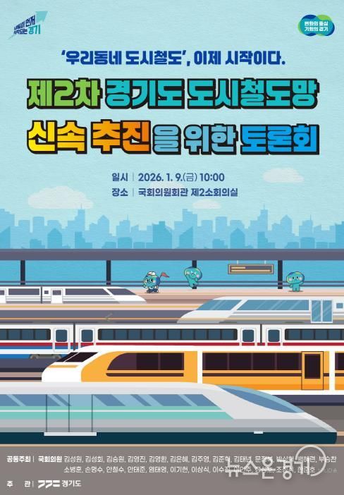 뉴스온경기 | 경기도가 ‘제2차 경기도 도시철도망 구축계획(′26~′35)’에 반영된 사업들의 실질적인 추진 방안 논의를 위해 9일 국회의원회관 제2소회의실에서 국회토론회를 연다.