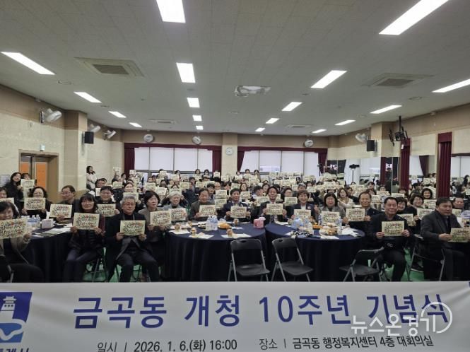 뉴스온경기 | 2026년 개청 10주년을 맞은 권선구 금곡동은 지난 6일 지역구 의원과 주민 등 100여 명이 참석한 가운데 주민자치회 및 통장협의회와 함께 10주년 기념행사를 개최했다.