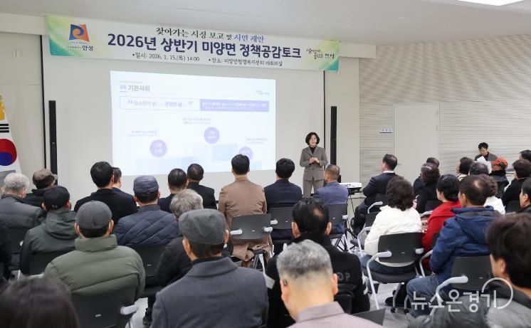 뉴스온경기 | 안성시 미양면은 지난 1월 15일, 미양면행정복지센터 대회의실에서 주민 120여 명이 참석한 가운데 ‘2026년 상반기 미양면 정책공감토크’를 성황리에 개최했다.