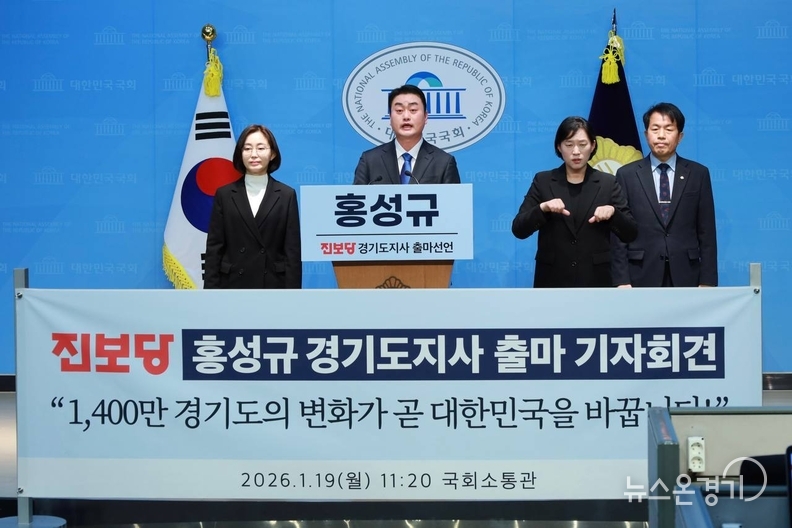 홍성규 진보당 경기도지사 후보가 19일, 경기도의회 브리핑룸에서 '출마 기자회견'을 갖고 "새로운 경기도가 곧 새로운 대한민국"이라고 선언했다.
