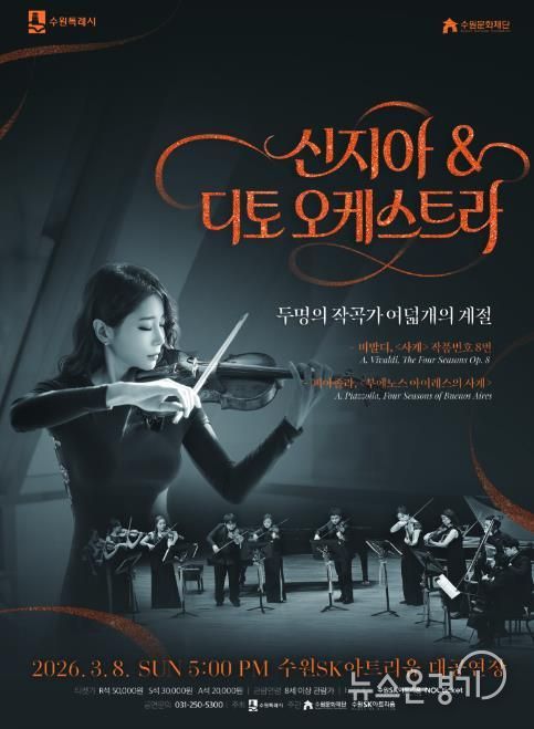 수원문화재단 관계자는 “이번 공연은 유럽의 바로크와 남미의 탱고가 표현하는 사계절을 한자리에서 경험할 수 있는 기회다”며 “계절의 변화를 섬세하게 그려내는 연주에 시민 여러분의 많은 관심을 바란다”고 전했다.