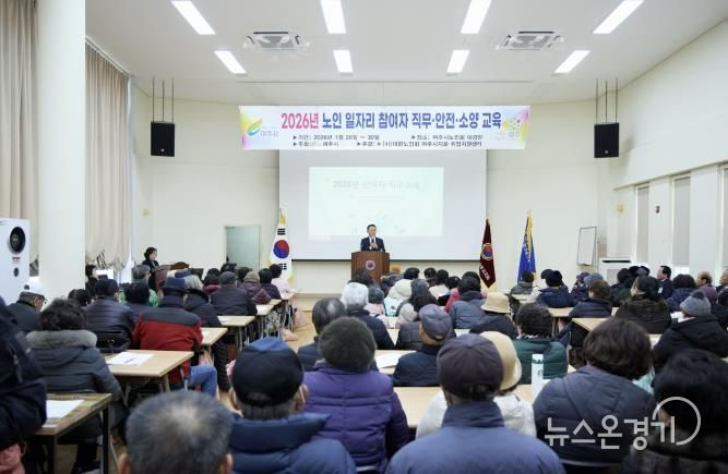 뉴스온경기 | 여주시는 1월 26일부터 1월 30일까지 대한노인회 여주시지회 2층 강당에서 “2026년도 노인일자리 및 사회활동 지원사업” 에 대하여 어르신 참여자를 대상으로 ‘안전사고 예방 등 직무 교육을 실시하고 있다’고 밝혔다.