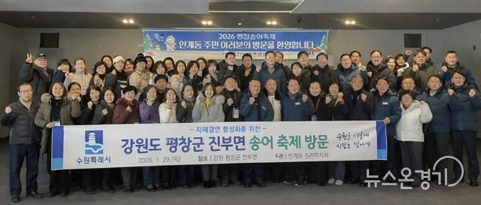 뉴스온경기 | 수원시 팔달구 인계동은 지난 29일, 인계동 주민자치회 등 단체원 40여 명과 함께 자매결연지 평창군 진부면에 방문, 평창송어축제에 참여하여 선진적인 축제 운영 사례를 견학하고 자매결연지 간의 교류 활성화에 나섰다고 밝혔다.