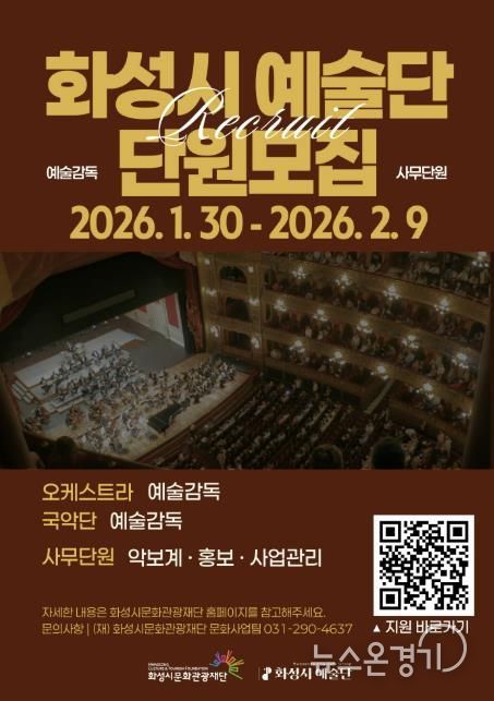 뉴스온경기 | (재)화성시문화관광재단은 2026년 ‘화성시 예술단’을 이끌어갈 예술감독과 사무단원을 모집한다.