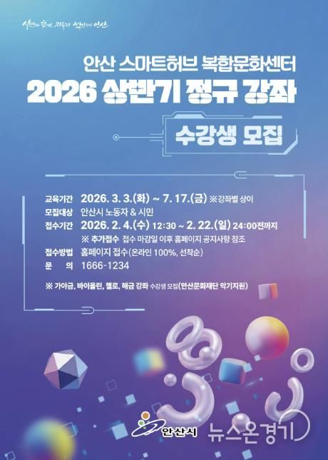뉴스온경기 | 안산시 스마트허브복합문화센터는 오는 4일부터 상반기 정규강좌 수강생을 모집한다고 3일 밝혔다.