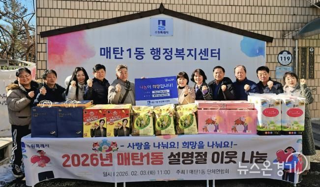 뉴스온경기 | 수원특례시 영통구 매탄1동은 지난 3일 설 명절을 맞이해 관내 저소득층 300여 세대에 후원물품을 전달하는 이웃돕기 나눔 전달식을 개최했다.