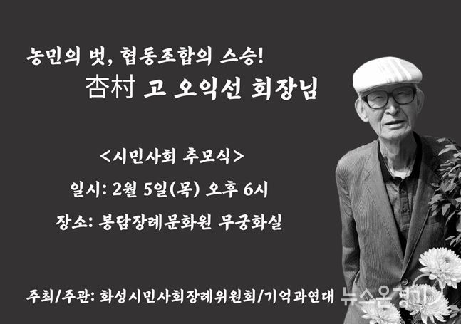 장례는 화성시민사회장으로 치뤄지며, 시민사회추모식은 2월 5일 오후 6시 봉담장예문화원에서 열린다.