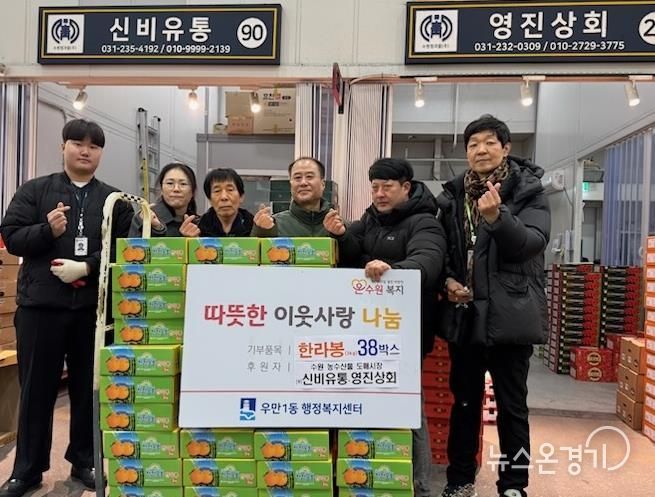 뉴스온경기 | 수원 농수산물도매시장 내 신비유통‧영진상회에서 설 명절을 앞두고 우만동 이웃들에게 따뜻한 정을 전했다고 밝혔다.