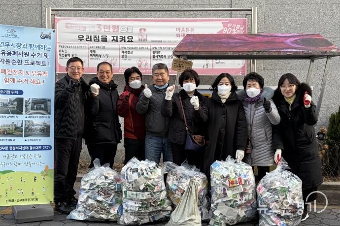 뉴스온경기 | 수원시 장안구 연무동은 지난 6일, 반사모(반딧불이 연무시장 사랑 소모임)와 함께 연무시장 일원에서 유용생활폐자원을 수거했다.