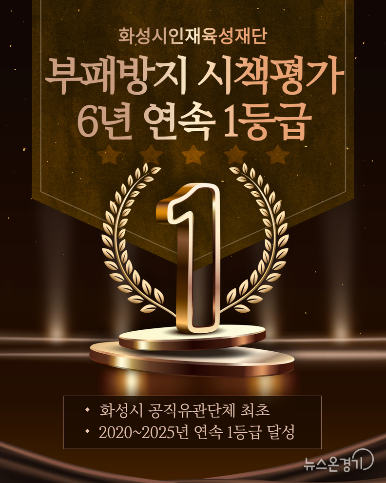 화성시인재육성재단(대표이사 임선일)이 ‘2025년 화성시 공직유관단체 부패방지 시책평가’에서 1등급을 받으며 6년 연속 1등급을 달성했다. 특히 이번 성과는 화성시 공직유관단체 중 최초로 6년 연속 1등급을 기록한 사례로, 재단의 반부패·청렴 정책이 제도 구축을 넘어 현장 실행력까지 안정적으로 정착됐음을 보여준다.