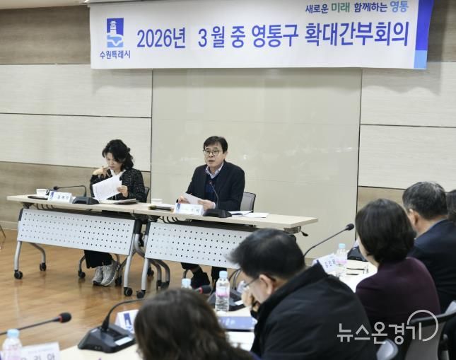 뉴스온경기 | 수원특례시 영통구는 지난 24일, 구청 상황실에서 ‘2026년 3월 확대간부회의’를 개최하고, 구정 주요 현안을 집중 점검했다.