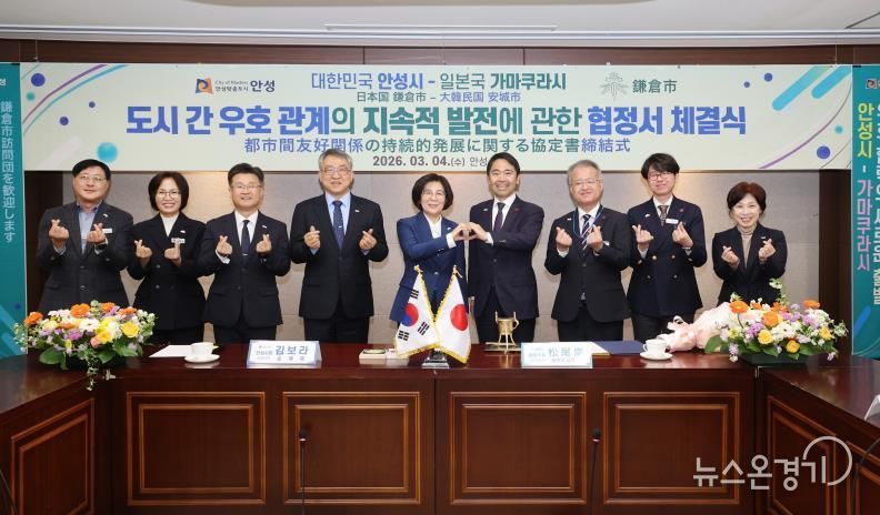 뉴스온경기 | 안성시는 2026년 3월 4일 오전 11시 안성시청 본관 2층 상황실에서 일본 가나가와현 가마쿠라시(시장 마쓰오 다카시)와 '도시 간 우호 관계의 지속적 발전에 대한 협정'을 체결하고 양 도시 간 문화·예술 및 청소년 분야 교류를 본격 추진하기로 했다.
