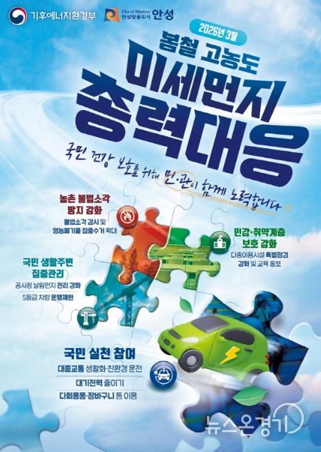 안성시 관계자는 “봄철 미세먼지는 단기간 고농도로 발생하는 특성이 있는 만큼 선제적인 대응이 중요하다”며 “시민들이 체감할 수 있는 대기질 개선을 위해 최선을 다하겠다”고 밝혔다.