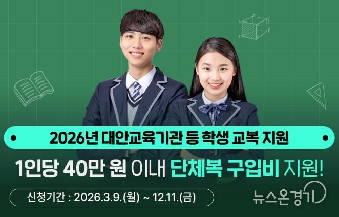 뉴스온경기 | 경기도는 시군과 협력해 교복, 체육복 등 단체복 구입비 최대 40만 원을 지원한다. 지원 대상은 입·전학일 기준 경기도에 주민등록을 둔 도 내·외 대안교육기관 중·고등학교 1학년 입학생과 다른 시도에 소재한 중·고등학교 1학년 입학생이다.