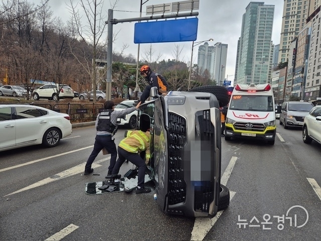 화성소방서는 6일 오전 9시 15분경 화성시 일대에서 발생한 3중 추돌 교통사고 현장에서 전복 차량에 갇힌 운전자 1명을 신속히 구조했다고 밝혔다.