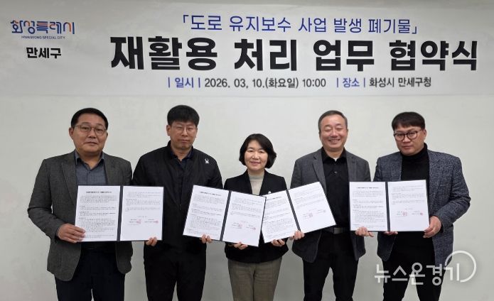 뉴스온경기 | 화성특례시 만세구가 도로 유지보수 과정에서 발생하는 폐기물을 효율적으로 처리하고 자원 재활용을 확대하기 위해 관내 아스콘 생산 업체와 ‘폐아스콘 재활용 처리 협약’을 체결했다.